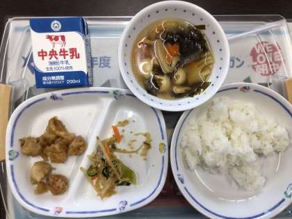 今日の給食は、 ☆鶏肉の香味ソースかけ ☆ナムルなどでした。 おいしくいただきましたね。