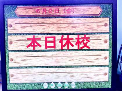 6/2(金)本日 休校 公開日 2023/06/02 更新日 2023/06/02 お知らせ 昨日、学校HPやきずなネットでお知らせをいたしました通り、本日、災害級の大雨が予想されていることから、豊田市内の小・中・特別支援学校においては、本日6月2日(金)は臨時休校となりました。 本校においても休校です。