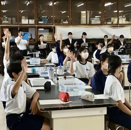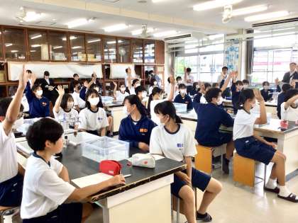昨日、5時間目に3年1組で、理科の研究授業を行いました。