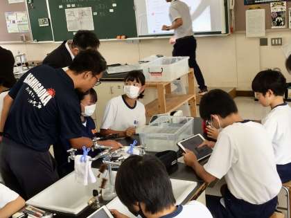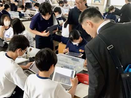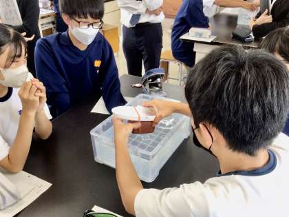 6/2(金)31C理科研究授業5 公開日 2023/06/02 更新日 2023/06/02 輝く朝中生! 船に石材を乗せると、船は沈んでしまいます。 どうやったら、石材を運ぶことができるでしょう。 模型を使って、調べています。 3年