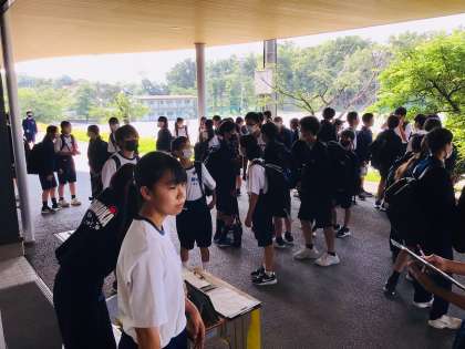 6/8(木)7時43分ごろ 公開日 2023/06/08 更新日 2023/06/08 学校の特色ある活動 今朝の7時43分ごろの様子です。45分の昇降口が開くのを生徒の皆さんは待っています。もうすでに4挨拶運動の準備などの生徒会役員や、他の係の仕事のある生徒は、7時40分に登校し、昇降口前で準備をしています。これが、毎朝の朝中の景色です。 特色ある活動