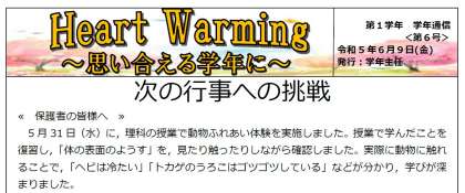 ☆★☆令和5年度学年通信「Heart Warming」6月9日
