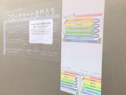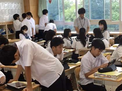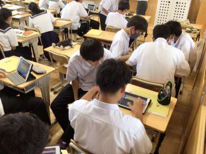 タブレットを有効に使いながら、授業が進行していきます。お互いに伝え合うという姿が見られることが、一つの目標として行っています。