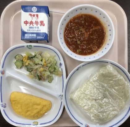 6/15(木)今日の給食!! 公開日 2023/06/15 更新日 2023/06/15 校長室から 今日の給食は、たべ丸のおすすめ給食です。 ⭐️ツナサラダ ⭐️チーズオムレツ ⭐️豊田麺 ⭐️ミートソースです。 ミートソースかけにしてたべました。美味しかったですね。