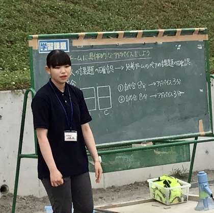 前時の反省を確認にし、本日の学習の見通しを持たせている場面です。