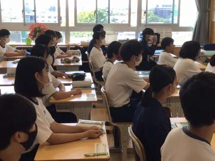 6/16(金) 保健室の先生による授業31C32C 公開日 2023/06/16 更新日 2023/06/16 学校の特色ある活動 本校では、保健の授業を保健室の先生(養護教諭)が行う試みを行っています。この2人は、授業を行う資格もしっかりともっております。 3年生8クラスのすべてのクラスで、このように授業を行っています。 3年 特色ある活動