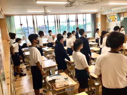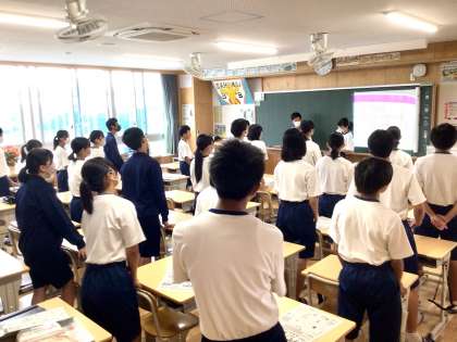 3年1組の早口言葉、声出しトレーニングの様子です。