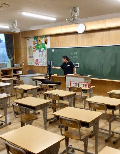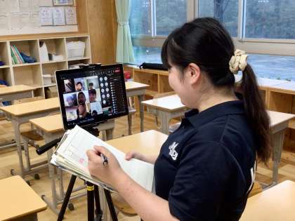 朝の会の様子です。 6組 8組です。