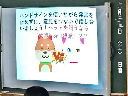 6/23(金) 11Cグループワークトレーニング 公開日 2023/06/23 更新日 2023/06/23 各学年から 1年1組のグループワークトレーニングです。 猫派か犬派か?どちらが多いのか? 1年