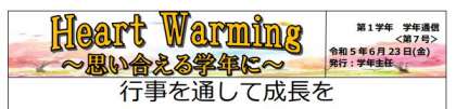 ※※※令和5年度学年通信「Heart Warming」6月23日☆☆☆