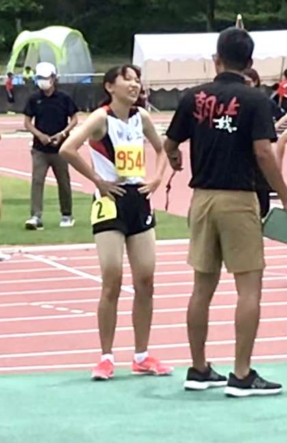 すばらしい走りで優勝! 先生も生徒のがんばりを称えました。