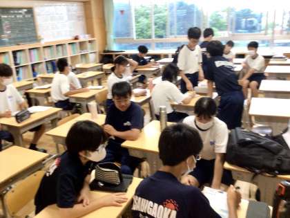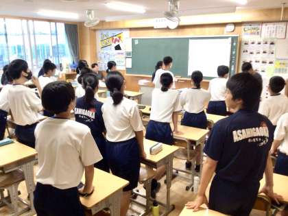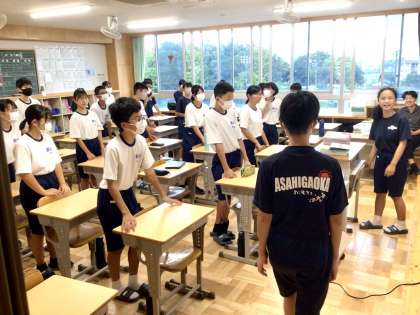 2年5組と4組の様子です。 声出しトレーニングから行っています。