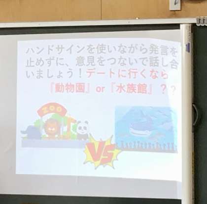 6/30(金)34Cハンドサインを使いながら・・・ 公開日 2023/06/30 更新日 2023/06/30 各学年から 今年から、ハンドサインを使いながら、授業を進めています。 今日は、水族館か動物園かについて意見を交わし合いました。 3年4組です。 3年