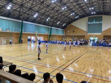 ハンドボールの大会1日目 予選リーク1試合目 対上郷中です。