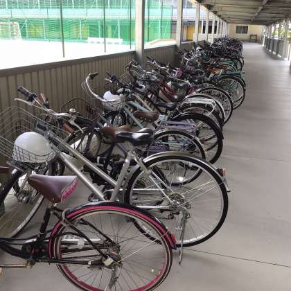 7/3(月)2年生 職場体験学習事前打ち合わせのため 公開日 2023/07/03 更新日 2023/07/03 校長室から 自転車で移動をする生徒が多いのですね。 自転車通学者以外の自転車です。 今日、これに乗り、事業所へ出かけます。