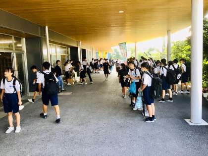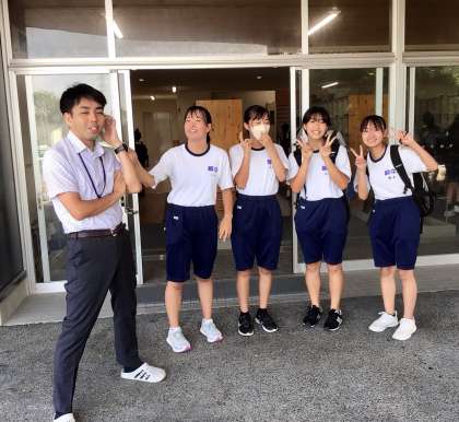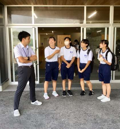 本日の朝です。 バレーボール部の生徒が、大橋先生に何か楽しそうな話をしていました。