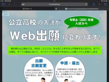 【進路情報】愛知県のHP 進路情報が更新されています 公開日 2023/07/10 更新日 2023/07/10 お知らせ 愛知県の進路情報が更新されています。 愛知県の進路情報は、本校のHPのトップページから入り、 クリックを2回行うだけで、WEB出願(今年度より)のことについて知ることができます。 ご覧ください。