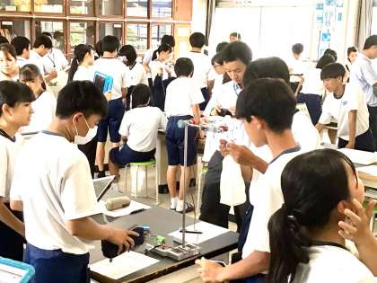 全校のほとんどの先生が、理科室に集まり、授業を参観しました。