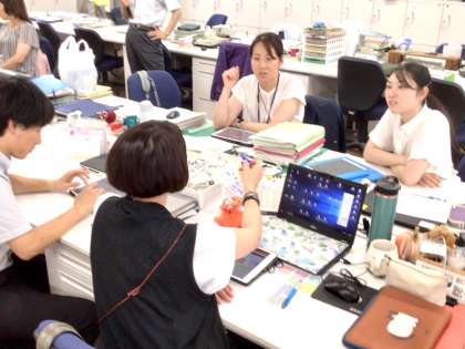 7/18(火)先生たちの研究協議会 公開日 2023/07/18 更新日 2023/07/18 校長室から 今日の授業が生徒にとって、そして教師にとって、どう出会ったかについて授業について語る会を行いました。小グループに分かれて、先生たちで議論を戦わせました。