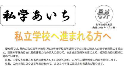 【お知らせ】私立学校へ進まれる方へ(愛知県HPより)