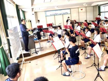 7/27(木)愛知県吹奏楽コンクール西三河北地区大会 公開日 2023/07/27 更新日 2023/07/27 お知らせ 本日、愛知県吹奏楽コンクール西三河北地区大会が行われます。 豊田市民文化会館にて午後(13時36分〜)行われます。 写真は、昨日の最後の練習です。職員室にいた先生が、参観している場面です。
