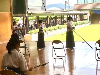 7/28(金)愛知県中学校総合体育大会 弓道 公開日 2023/07/28 更新日 2023/07/28 輝く朝中生! 愛知県中学校総合体育大会 弓道の部が本日蒲郡市の弓道場で行われました。 朝日丘中の生徒は、最初から 調子良くマトを当てることができていました。 予選の様子です。 3年 部活動