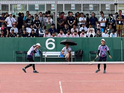 8/22(火)ソフトテニス全国大会2日目 女子個人戦 公開日 2023/08/22 更新日 2023/08/22 輝く朝中生! 本日は、ソフトテニス部全国大会個人2日目 伊藤・廣瀬 組が、 準々決勝を行っています。 2年 3年 部活動