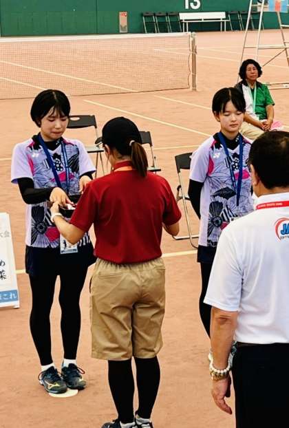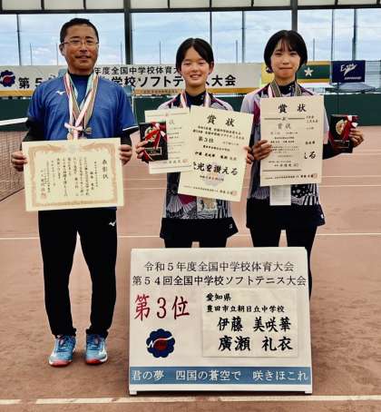 伊藤さん・廣瀬さん組の女子個人戦の表彰式の様子です。ソフトテニス個人戦 全国第3位という成績を収めることができました。明日の団体戦もがんばります。