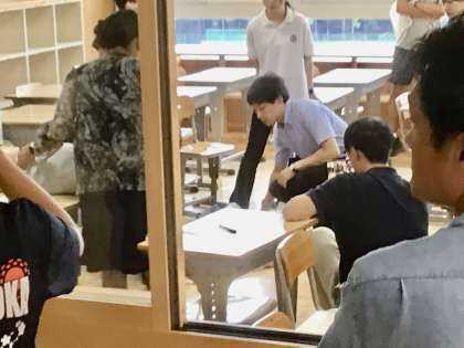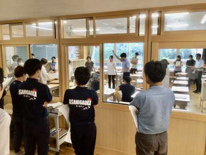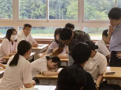 8/25(金)緊急対応シミュレーション研修3 公開日 2023/08/25 更新日 2023/08/25 学校の特色ある活動 実際に調子の悪くなった生徒が出た想定で行いました。先生たちが、チームを組んで協力して行うことは、なかなか咄嗟にはできません。生徒の命に関わる大切な訓練です。朝中教師は、真剣に取り組みました。 特色ある活動