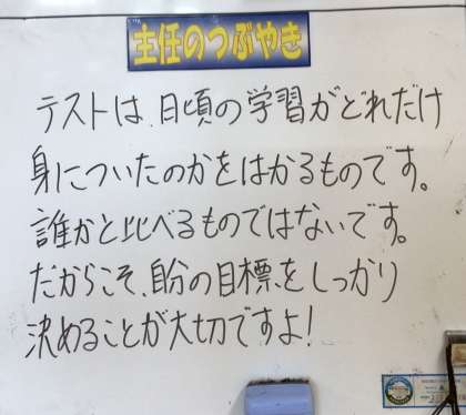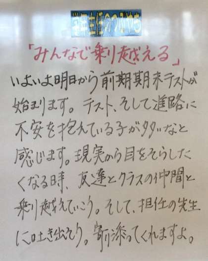 9/5(火)学年主任の言葉 公開日 2023/09/05 更新日 2023/09/05 各学年から 学年主任の先生たちは、この学年掲示板のコーナーより学年の生徒たちに言葉を投げかけています。 1年 2年 3年