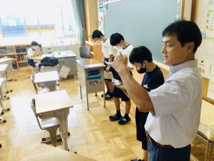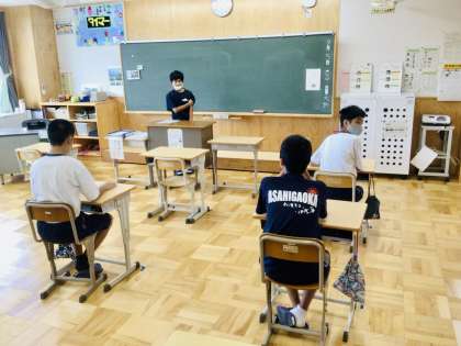 1、2、3、4学級の朝の会の様子です。落ち着いた朝の会が始まります。