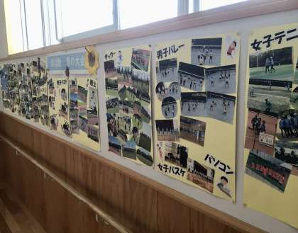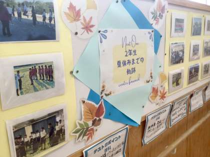 学年掲示板より 夏の大会等の活躍ぶりが掲示・展示されています。