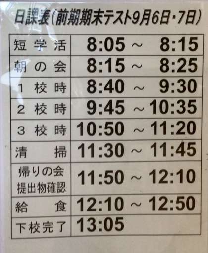 9/5(火)明日の時間割、そしてフォーマルウエアーです
