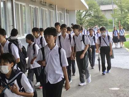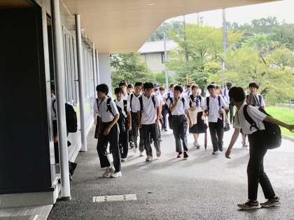 制服やポロシャツなど、生徒は、自分で選んだ服装で登校をしてきます。
