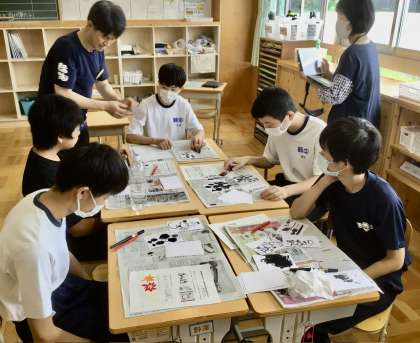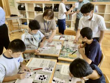 この真剣な姿を見てください。集中して「ありがとう」の文字を書きました。