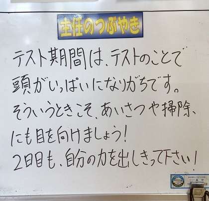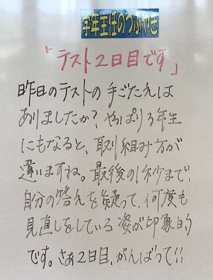 今日の学年掲示板の学年メッセージです。 ご覧ください。