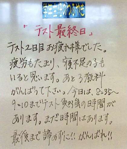 今日の学年メッセージです。毎日更新されています。ご覧ください。
