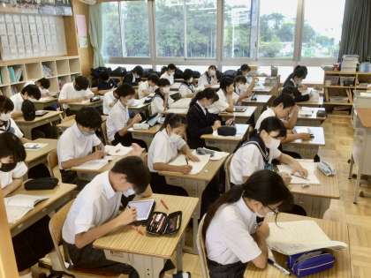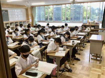 1年7組と8組です。 一生懸命に学習を進めています。