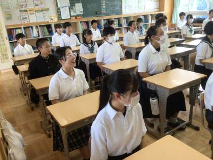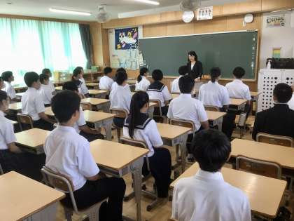 9/13(水)23Cマナー講座4 公開日 2023/09/13 更新日 2023/09/13 各学年から 株式会社 マネジメント名古屋 の篠田さんをはじめとする方々をお招きして、職場体験学習に生きる礼儀やマナーについて学びました。