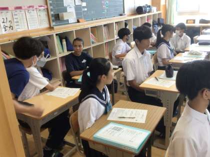 9/13(水)21Cマナー講座6 公開日 2023/09/13 更新日 2023/09/13 各学年から 大学生も一緒に授業を受けています。 前髪が目にかかってはいけない理由も接客業から学んでいました。 2年