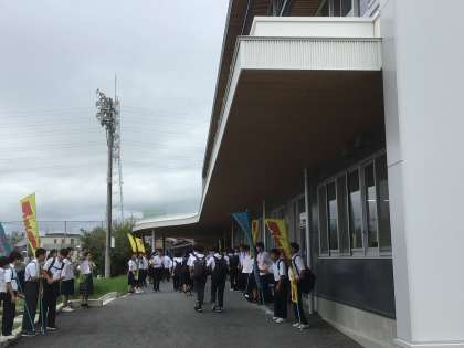 今日は挨拶運動に加えて、後期生徒会選挙活動がスタートしています。