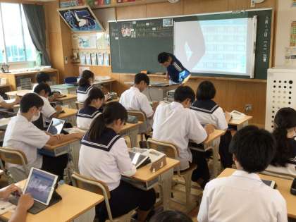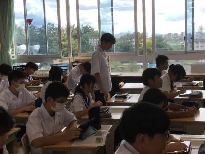 3年5組です。道徳の授業です。ICTタブレットを使っています。