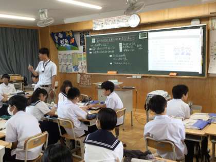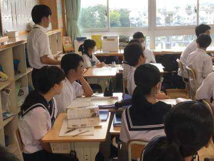 社会の授業 36Cです。班活動を行っています。