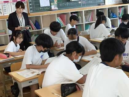 豊野高校の先生も中学校現場を見学されています。朝中生の良さを見てくださっています。
