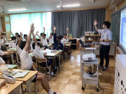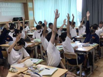 9/21(木)33C理科の授業 挙手がいいですね 公開日 2023/09/21 更新日 2023/09/21 各学年から 33Cの理科の授業です。 挙手が素晴らしいですね。 自然に手が真上にピンと伸びる朝中生です。 3年