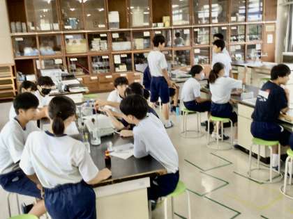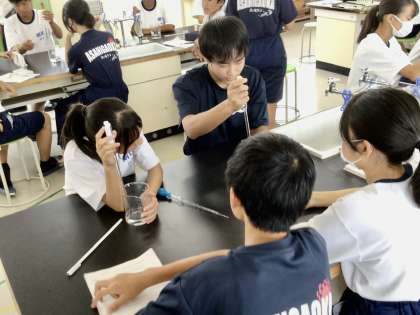 2年1組の授業です。唾液を使った実験を行いました。