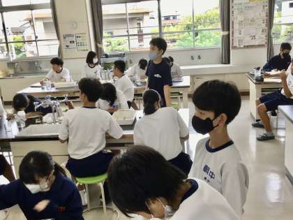 9/22(金)23C理科の授業です。 公開日 2023/09/22 更新日 2023/09/22 各学年から 第2理科室での理科の授業です。同じようにデンプンの分解の授業です。唾液を使って実験を行っています。 2年