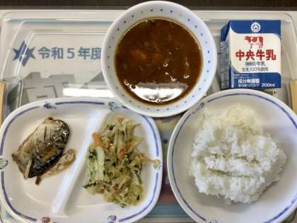 9/25(月)今日の給食 公開日 2023/09/25 更新日 2023/09/25 校長室から 今日の給食は、 ⭐️野菜のアーモンドあえ ⭐️鯖の煮付け ⭐️豚汁 ⭐️ご飯と牛乳でした。 美味しくいただきましたね。