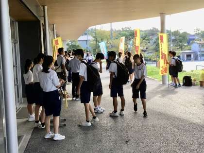9/26(火)今朝の様子! 公開日 2023/09/26 更新日 2023/09/26 特別活動 2年生が職場体験学習に出かけているため、朝の混雑が緩和されている昇降口付近です。挨拶運動を一生懸命に行う、1、3年生です。