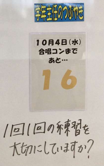 合唱コンクールに向けて意外に短いですね。 頑張る生徒を応援していますよ。